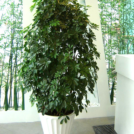 鵝掌木(Schefflera)為五加科鵝掌柴屬植物,原產(chǎn)南洋群島、我國廣東、福建等亞熱帶雨林,掌狀復(fù)葉,小葉5-8枚,有光澤,有明顯脈紋,放射葉似鵝掌而得美名。粵菜中的鵝掌更有招財(cái)進(jìn)寶之寓意。最新園藝栽培品種株形豐滿優(yōu)美,葉色亮麗,適應(yīng)能力強(qiáng),適宜布置客廳、書房及臥室。也可栽于庭院蔽蔭處和陽臺(tái)上觀賞。