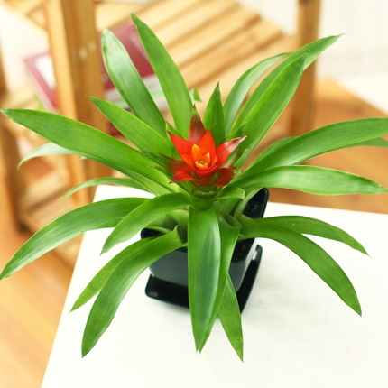 鳳梨原產(chǎn)中南美洲熱帶地區(qū)。葉片濃密似噴泉,花從中出如立劍,花色紅黃也有紫,花期長達(dá)3個(gè)月,室內(nèi)盆花品新貴。因其耐蔭性極好,適宜于室內(nèi)桌面、廳堂、窗臺(tái)等的擺放布置,也可放于室外遮蔭處。
